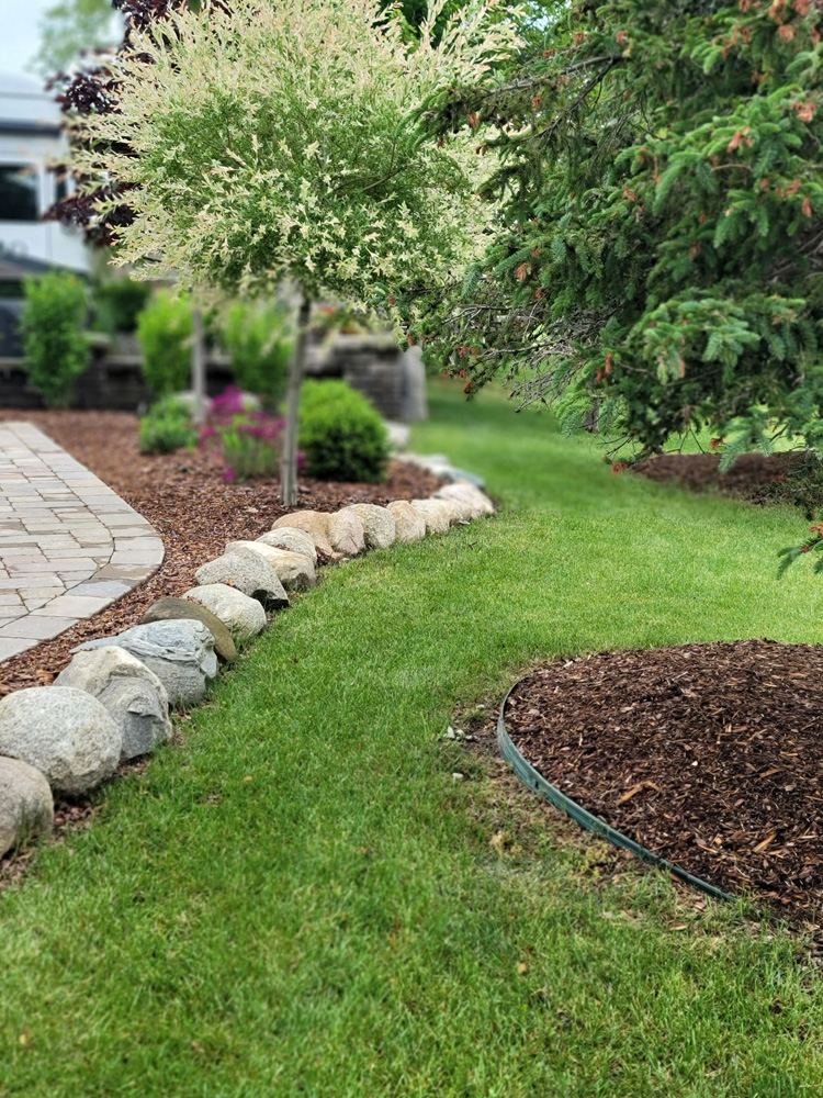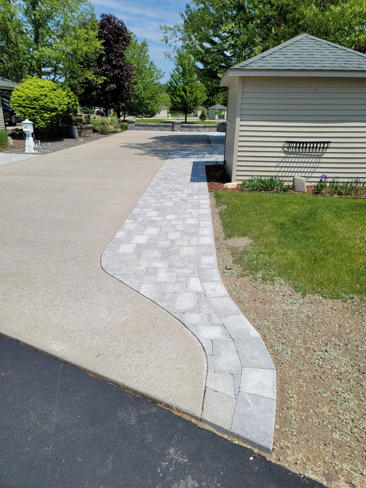 Scenic private valley view. Here is a deep back-in lot located on Traverse Bay Drive just North of the Main Clubhouse. This lot is in a row of lots that are the deepest lots in the Resort, 46’ wide x 110’ deep. In addition to the depth, the rear of the lot overlooks a natural valley area with the woods off to the East. The common area behind the lot is maintained at the top and natural growth down the hill. This is a perfect site for RVers with pets. New upgrades added in 2025 include a soldier row of modern style gray brick pavers installed along the driveway on the patio side as well as a wide stretch of the same trendy brick pavers installed along the utility side of the driveway. The sewer cap has been built into the pavers, no more stumbling over rocks or mulch while doing RV maintenance. The wide row of pavers provides extra vehicle parking space for a 2nd vehicle, guests or a golf cart. To the rear of the lot there is a 10’x10’ Coach House with a 10’x10’ porch extension that has been added at the side which allows for privacy while enjoying the natural view to the rear of the lot. Enjoy evenings with porch lighting and ceiling fan. Flagstone finishes the patio underneath and beyond the porch extension with a walkway leading over to the concrete drive. The Coach House interior has been beautifully finished with electric, water, drywall, moldings, hickory cabinets, solid surface countertop, built in sink, storage closet, tile floor, window blinds and a convenient built in double door screen system. A large planting berm which already boasts a beautiful large spruce and a maple tree, has been stripped, re-mulched and ready to plant. There is plenty of room for flowering bushes, perennials or a privacy hedge. Also added in 2025 is a complete new sprinkler system ready to green up the lawn and maintain any new landscaping improvements. This lot is on an angle facing NW which allows for you to enjoy shade in the late afternoon at the patio side of the lot. The private rear patio faces the sunrises and perfect moonlight views at night.