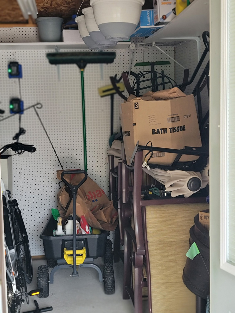 This could be the most private lot in the community. This shaded Back-in South Loop (Class A only) lot is located on the East side of Scenic Pines Drive. The oversized lot is 47’ wide at the roadside and 60’ wide at the rear x 95’ deep. Enjoy plenty of shade and privacy with lovely mature trees adorning the property including 3 giant firs at the entry, 2 large red maples, Japanese maple, blue spruce and even a grove of poplars to the rear of the lot. There is also a pretty border row of tall flowering Viburnum bushes. The healthy pines have been professionally maintained and sprayed annually. Flagstone has been used creatively for walking paths and planting areas boast a mix of colorful perennials that last all season. At night, with solar landscape lighting, the back yard walkways resemble a small enchanted forest. Soldier rows of brick pavers line both sides of the driveway and the pavers continue in a circular fashion along the patio area and the side of the Coach House. Extra concrete joins the patio to the front of the Coach House. Natural stone rocks line the edges of the patio and colorful decorative stones line the utility side of the lot. There are plenty of areas to arrange patio furnishings and all areas enjoy afternoon shade. The 10’ x 10’ Coach House (with electric installed, cabinets & shelving) is set to the rear of the lot with the doors facing the road for easy access. Patio furnishings will be included as follows; dining table for 4 w/umbrella, matching 42” high rise table, polywood loveseat glider, 2 folding polywood Adirondack chairs, 10’x10’ square umbrella, w/swivel/cover/lights, propane fire pit, 6 garden chairs, 6 side tables, Weber BBQ grill w/stand/cover/propane tank, electric SunJoe lawn mower, patio lights, small water fountain and yard blower.